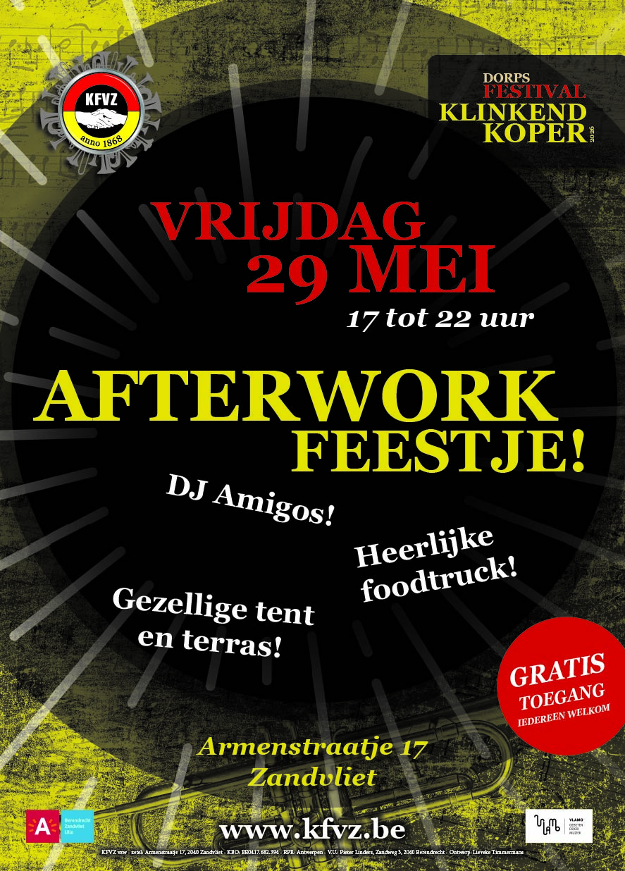 Afterwork en Klinkend Koper op 29, 30 en 31/5 🥳🎺🍻